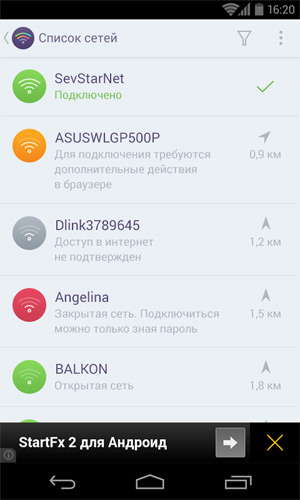 Менеджер сетей osmino Wi-Fi сразу показывает к какой
